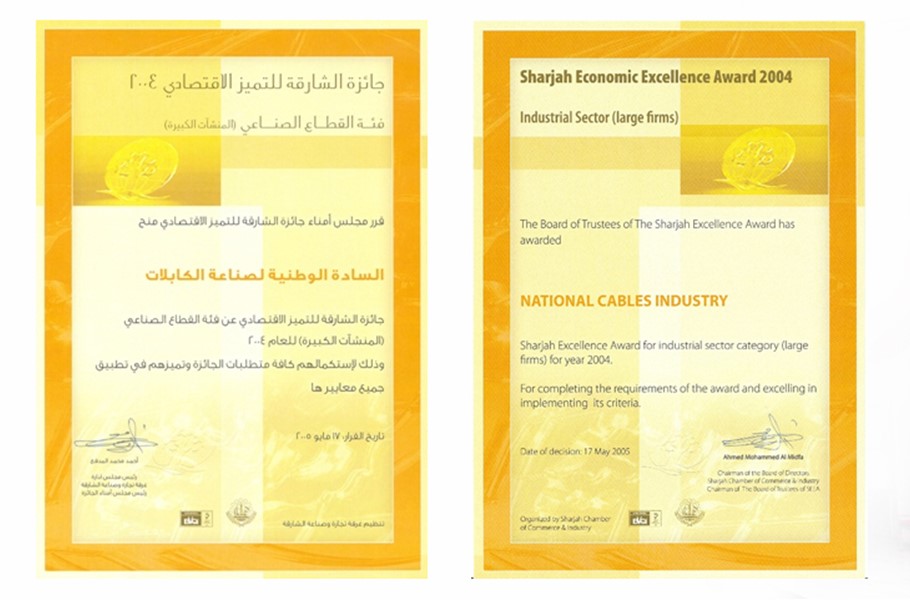 Winning the Sharjah Economic Excellence Award is not a chance; rather a hard work and determination to win and achieve the best in it”. In one of the so called ‘most prestigious award’ in the Emirate – National Cables Industry has finally reaped the reward of hard work and determination all the way to winning the Sharjah Economic Excellence Award in 2005. Competing in the Industry [Large Firm Category]